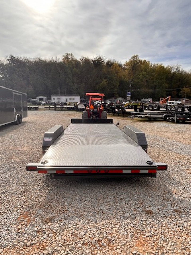 Frames: 5″ Channel FrameAxle Options: 2 – 5,200 Lb Dexter Spring Axles (2 Elec FSA Brakes)Tire Upgrades: ST225/75 R15 LRD 8 Ply. (BLACK WHEELS)Couplers: Coupler 2-5/16″ Adjustable (4 HOLE)Dove Tail & Floors: Steel Floor DP w/4′ Dove TailFenders: Diamond Plate Fenders (removable)Gates/Ramps: SIDE Slide-IN Ramps 6′ x 13″ (carhauler)Cross Members: 24″ Cross-MembersJacks: Jack Drop Leg 7000 lb.Lights: Lights LED (w/Cold Weather Harness)D-Rings: 4 – D-Rings 4″ Weld OnFront Toolbox: Sport BoxWinch: Winch Plate (8″ Channel)Spare Tire Mount (universal): Spare Tire MountColors: Powder Coat (w/Primer)