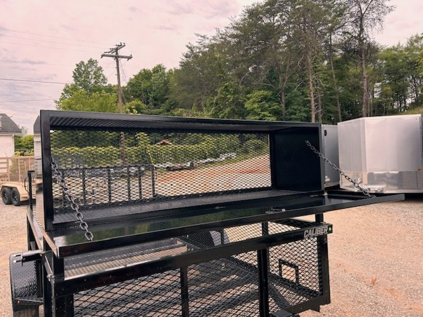 1 – 5,200 Lb Spring Axle (w/ brakes and breakaway)ST225/75 R15 LRD 8 Ply. (BLACK WHEELS)Coupler 2″ A-Frame CastMesh 1-1/2″ Flattened Expanded Metal FloorDiamond Plate Fenders4′ HD Fold Gate w/1-1/2″ Flattened Expanded Metal and Spring AssistRecessed Tongue JackLights: Lights LEDD-Rings: 4 – M -Tie Downs2 x 2 tube uprights and top rail with1-1/2″ Flattened Metal Mesh Sides 24″Front Tool Cage w/1-1/2″ Flattened Expanded Metal MeshPainted Black